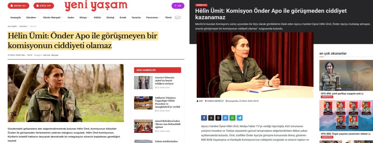 Helin Ümit’in tartışmalı açıklamaları, PKK yanlısı yayın yapan Yeni Yaşam gazetesi ve Fırat Haber Ajansı gibi terör örgütü destekçisi medya organlarında da geniş şekilde yer buldu.